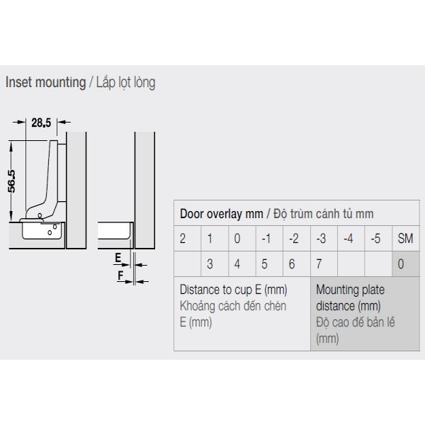 Thông tin sản phẩm của bản lề Metalla A lọt lòng Hafele 315.31.552