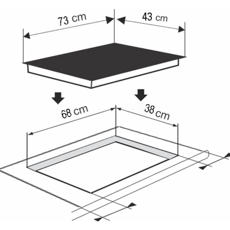 - Kích thước cắt đá: D680xR380xS30 mm