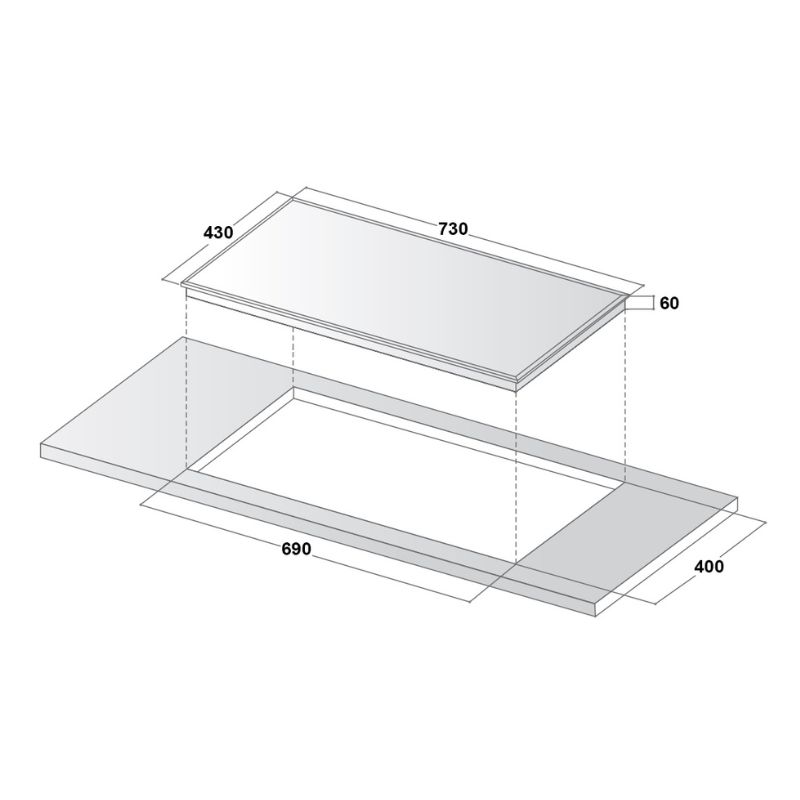 - Bếp đôi: 2 vùng từ, sử dụng mặt kính Vitro Ceramic vát 2 cạnh dài, bo 4 góc sang trọng