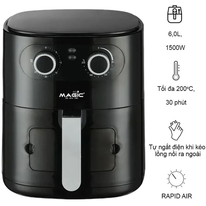 Nồi chiên không dầu Magic Eco AC-126 6.0 Lít – Giải pháp nấu ăn ngon, giảm dầu mỡ, bảo vệ sức khỏe gia đình.